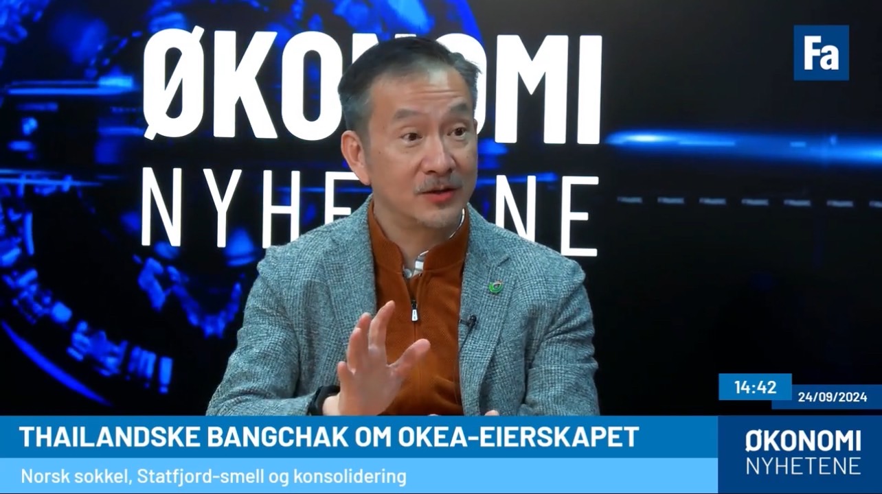 On 24 September 2024, while attending the OKEA board meeting in Norway, Bangchak Group CEO and President, Bangchak Corporation Plc., Chaiwat Kovavisarach, gave an interview to Finansavisen, a leading Norwegian business media outlet, alongside Svein J Liknes, CEO of OKEA. The interview was headlined, “OKEA’s major Thai shareholder: – We want them to grow many times over.”
