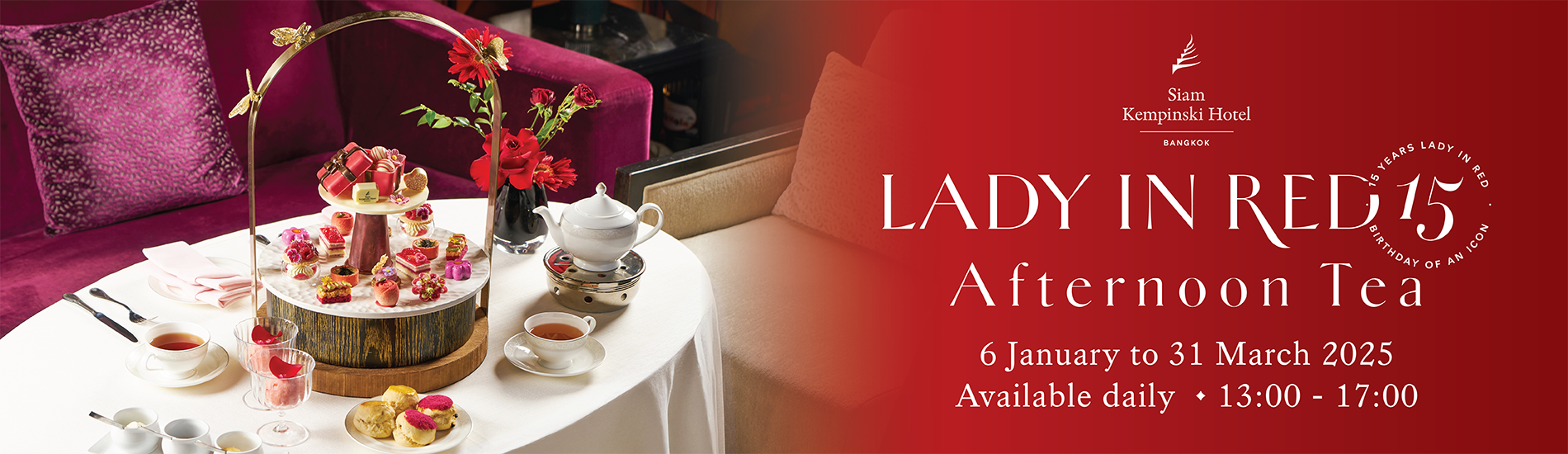 Siam Kempinski Hotel, one of our corporate members, delightedly invites you to join the celebrating 15 years of the Lady in Red, the enduring symbol of warm-hearted hospitality at Kempinski. Mark this special milestone with a thoughtfully curated afternoon tea experience at 1897 Lounge.