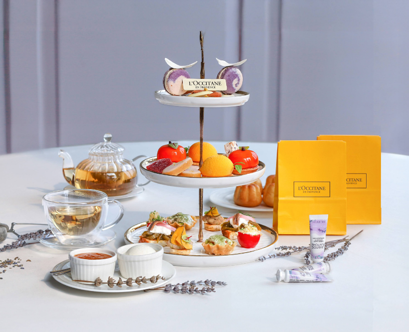 Experience afternoon indulgence with a selection of exquisite pastries and savory bites, inspired by L’Occitane’s White Lavender. From Lavender & Wildflower Macarons to Stuffed Vine Tomato Provençale, each bite is a treat for the senses, perfectly paired with fine teas and coffee.